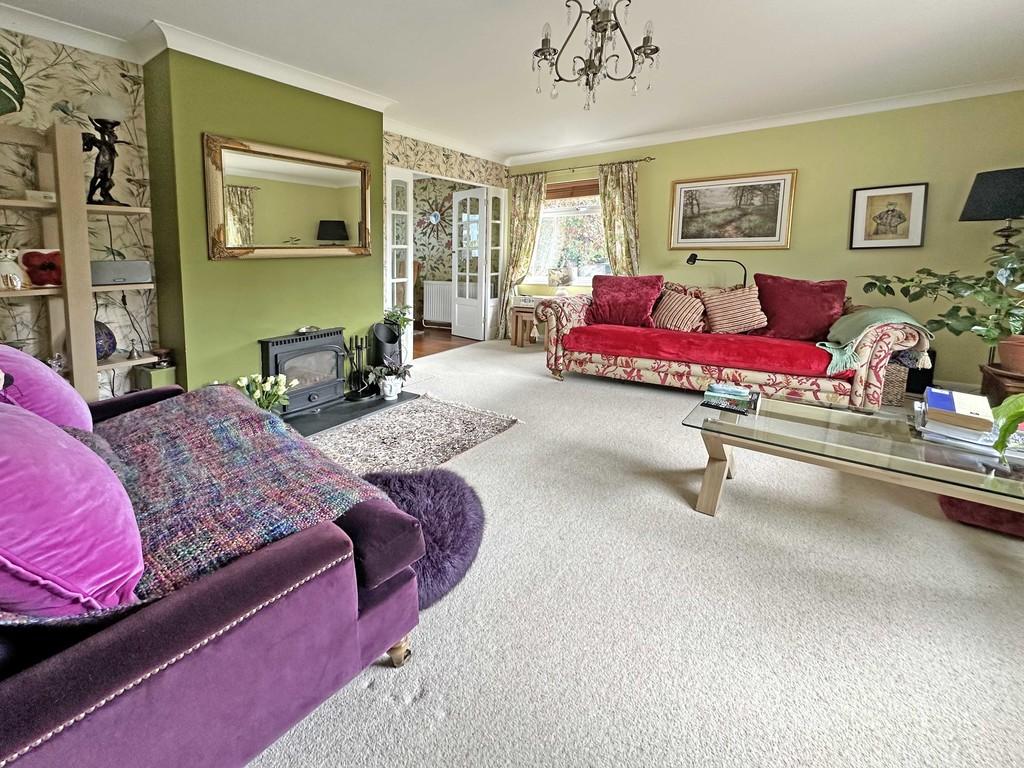 LIVING ROOM 16' 0" x 13' 9" (4.88m x 4.19m) (max) Wonderful spacious double aspect room with large Upvc double glazed windows to front and side aspect. Radiator. Feature fireplace with fitted wood burning stove on polished granite hearth. TV and telephone points. Glass panel doors to dining room.