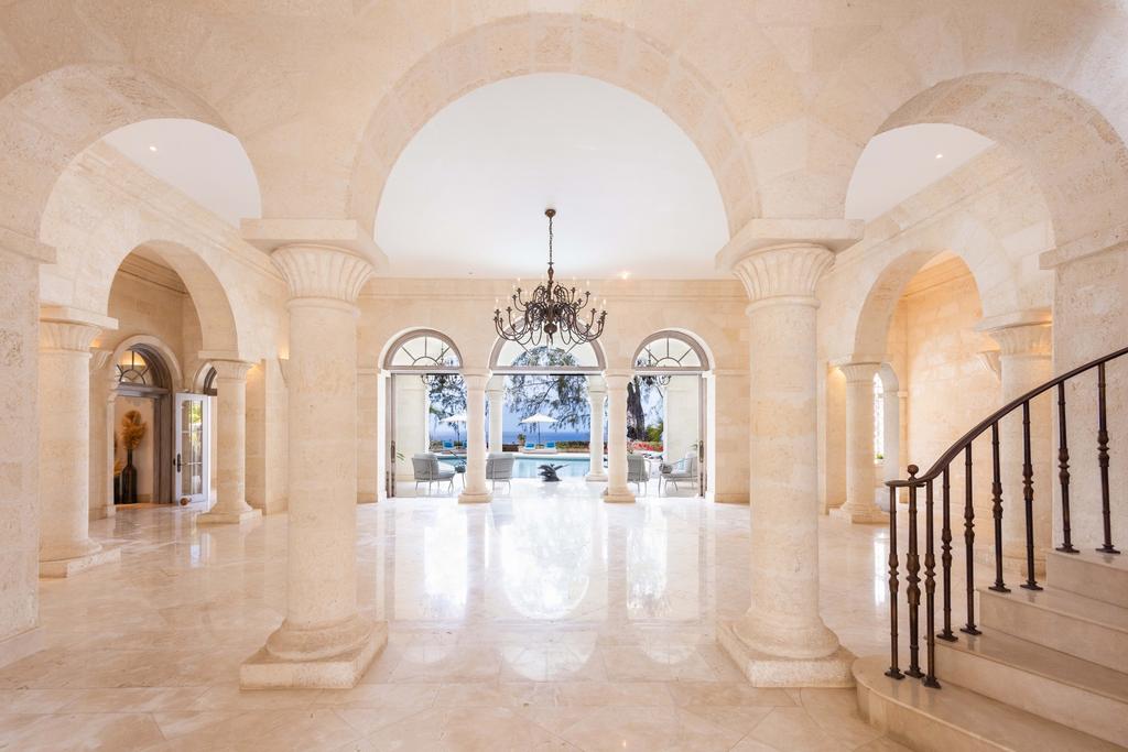 Coral stone interiors, high ceilings, and grand open spaces throughout