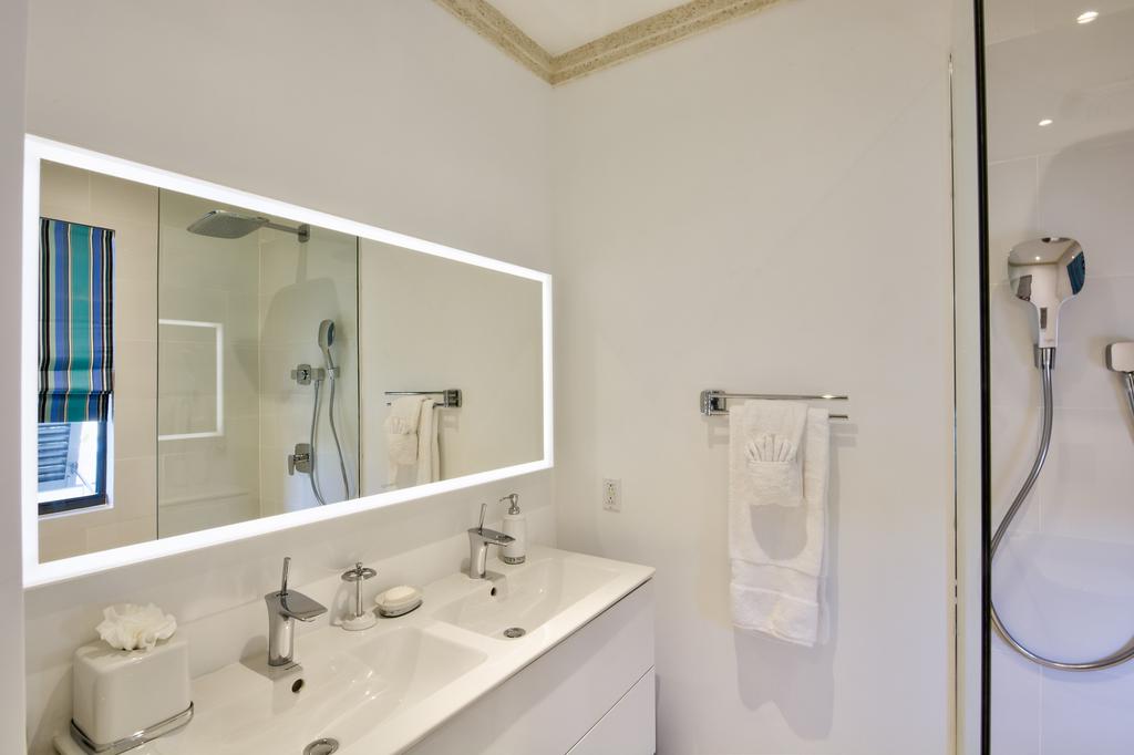 Upon entering, the home immediately impresses with its open-plan living spaces, inviting seamless transition from interior luxury to the beachfront terrace and turquoise waters beyond. A Siematic “Pure” Design kitchen and bespoke furnishings elevate the living experience, while SONOS surround sound discreetly enhances both interior and exterior spaces.
