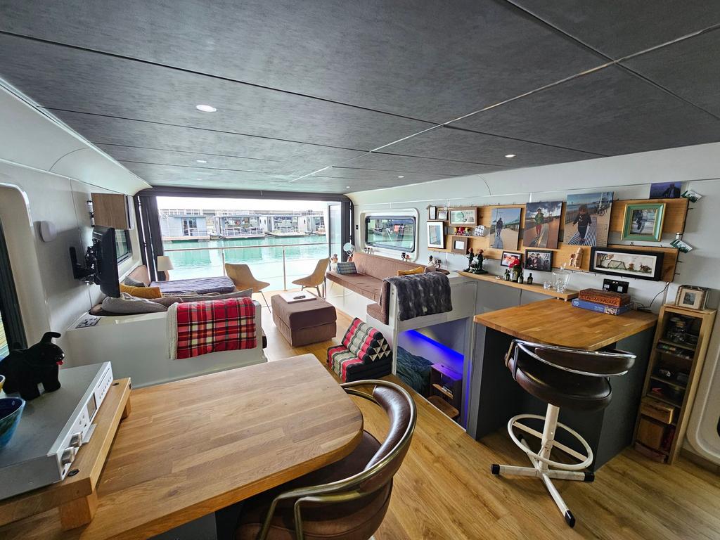 This floating home is owned outright with no lease, and the annual mooring fee covers secure parking, 24/7 gated access, and full use of marina facilities. The location offers excellent amenities, including nearby beaches, countryside walks, and local shopping.