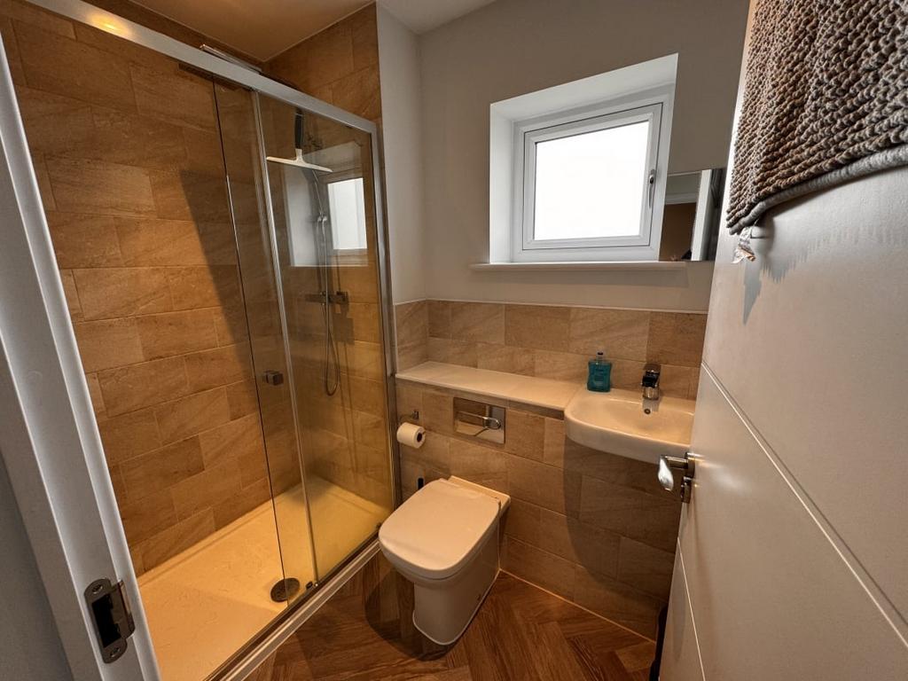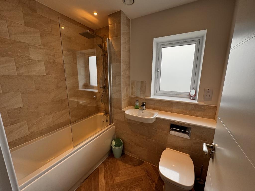 Upon entering the property, you'll be struck by the high-spec kitchen appliances, seamlessly integrated into the stylish kitchen design. The downstairs WC provides added convenience, while the living room boasts a stunning view, flooding the space with natural light. The three spacious bedrooms are complemented by two modern bathrooms, ensuring that every member of the household has spacious and comfortable living area.
