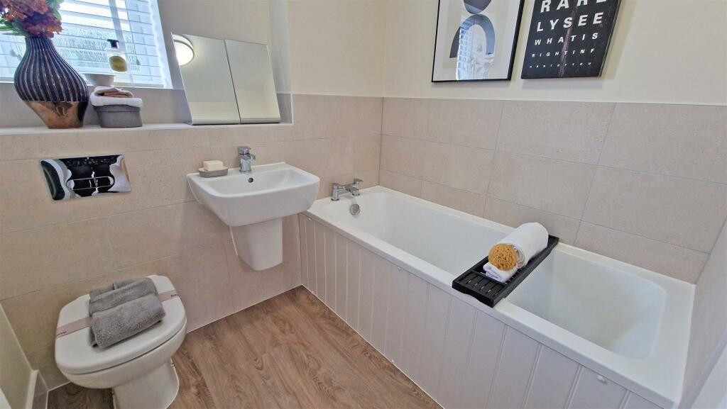 The first floor offers even more luxurious space. With three generously sized bedrooms and a stylish family bathroom, this home is perfect for growing families.