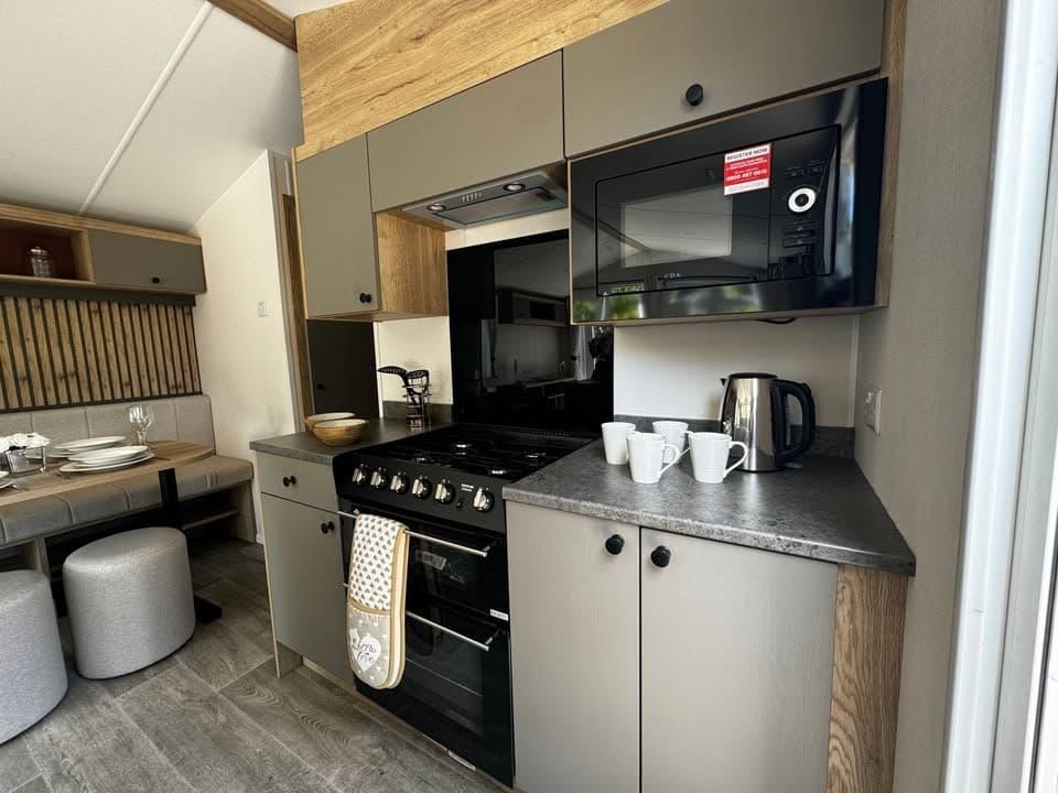 2025 New Willerby Rio 36x12 2 bed | The distinctive layout of the Rio allows you to step straight into the heart of the home - the kitchen, with the kettle just an arms reach away. With a cup of tea brewing, it's time to drop those bags and head straight to the comfy L-shaped sofa in the lounge where your vacation truly begins.
