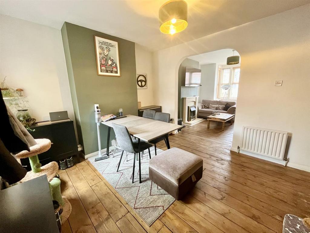 The property is accessed via part glazed entrance door leading into hallway. The lounge is situated at the front of the property which benefits from an electric fire, bay window overlooking the front and exposed floorboard. From here, leads into the spacious dining area with plenty of space for a dining set, a built in storage cupboard and window overlooking the rear. The spacious kitchen is situated at the rear of the property and is fitted with a range of wall and base units incorporating a selection of cupboards and drawers, there are spaces for modern day appliances to include cooker, fridge/freezer, dishwasher and washing machine. There is a breakfast bar and windows and a door overlook and afford access to the rear.
