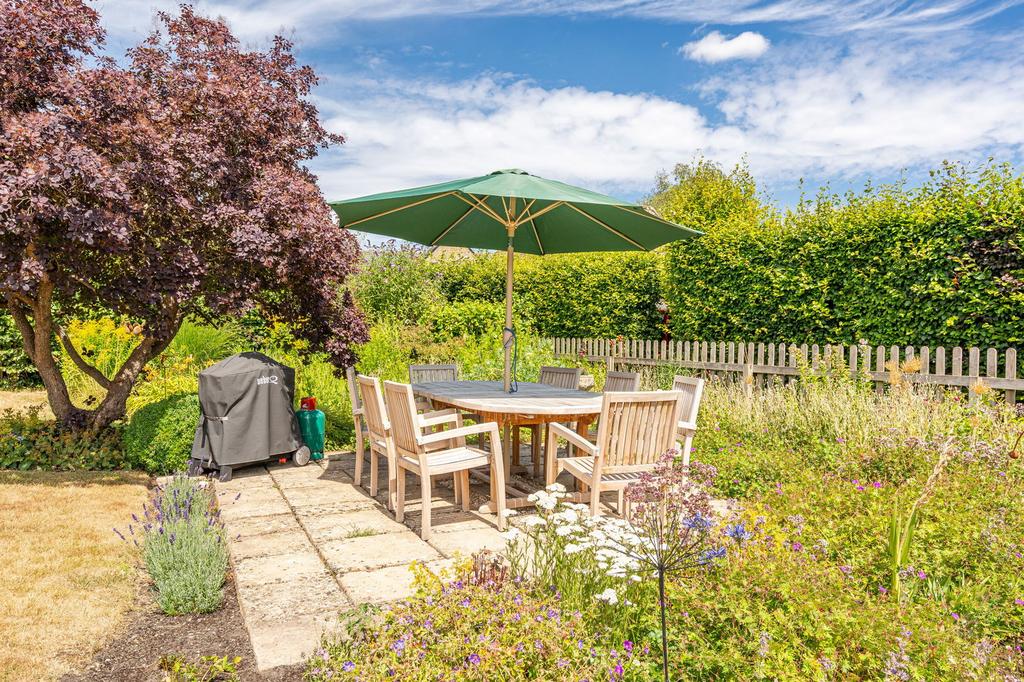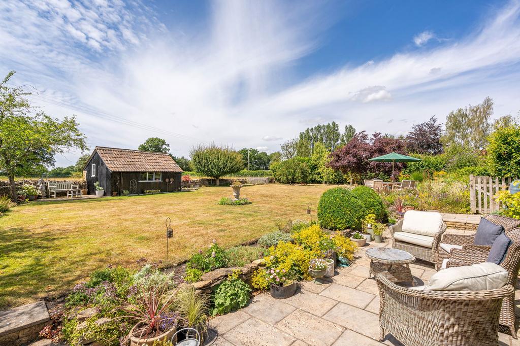 Benefitting from the sun all day, the beautiful traditional cottage style gardens are abundant with colourful flower beds in keeping with the overall charm of the property. The lawns wraparound the cottage in three main areas and there is a great degree of privacy provided by mature hedging. There is fantastic external storage found in various outbuildings which include a workshop with power, a garden store, stone-built bike store, as well as a child’s playhouse. A gated driveway at the rear allows for private off-street parking for several cars.