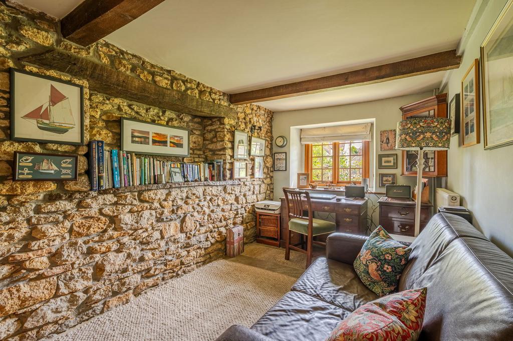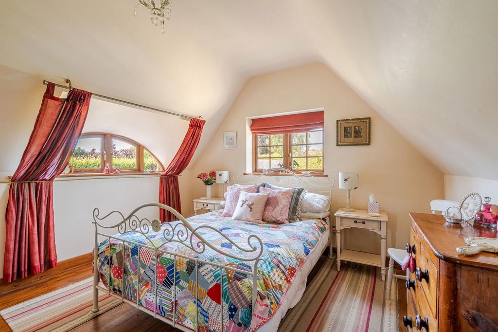The accommodation is surprisingly spacious offering around 1,910 sq.ft. arranged over two floors accessed by two staircases. The ground floor in particular boasts four reception rooms comprising a large dual-aspect living room, dining room, study and versatile playroom/office/4th single bedroom . Both the living room and dining room feature inglenook fireplaces with wood-burning stoves and the evidence of the original bread ovens. The fitted kitchen/breakfast room is positioned at the rear of the property complete with a larder and double doors connecting to the garden. There is a useful rear entrance lobby with a shower room and utility room off. On the first floor and to one side, there are two double bedrooms along with a bathroom. The excellent principal bedroom suite occupies the other side with an en-suite fitted with wardrobes.
