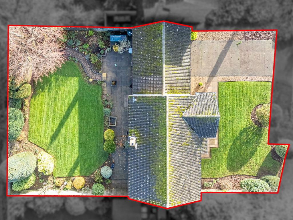 Outside a private driveway provides parking for two/four cars with access to a double garage with electric roller shutter door, complete with both power, light and a personnel door to the garden. The fore garden is attractively kept with a manicured lawn with shaped borders home to mature plantings. A paved pathway extends to the front door with specialist lighting providing evening illumination. The beautifully kept rear garden features an extensive paved patio perfect for garden furniture and alfresco entertaining. A meandering pathway is flanked on one side by lawn and planted borders on the other extending to a gravelled area which provides summer shade under an established tree. The garden is laid largely to lawn with beautifully kept floral, shrubbed and planted borders. A stone wall runs to the head of the garden with views of open countryside to the back.