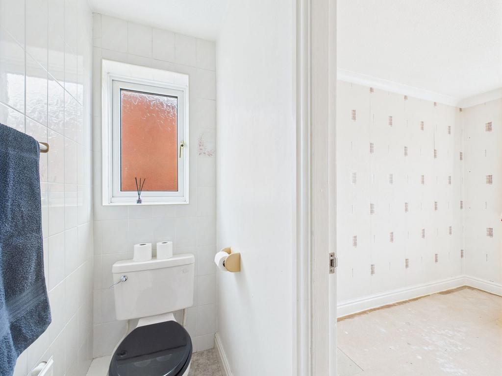 Upstairs, a bright landing leads to four well-proportioned bedrooms. The main bedroom is a generous double and features an en-suite bathroom complete with WC, sink, and a glass-enclosed shower. The remaining three bedrooms are all versatile and well-sized, perfect for children, guests, or home working. The family bathroom is currently fitted with a grey suite and provides a practical space for a growing family.
