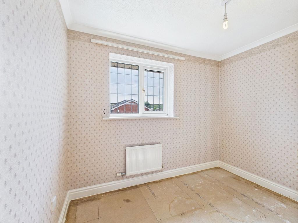 Upon entering, a spacious hallway with understairs storage leads to all ground floor rooms. The generously sized living room features a bay-style window that floods the space with natural light. Currently arranged with sofas, this versatile room can be styled to suit your personal taste. Flowing seamlessly from the lounge is the bright and inviting sunroom—a cosy retreat perfect for relaxing, dining, or entertaining. French doors open out onto the rear garden, creating a desirable indoor-outdoor living experience.