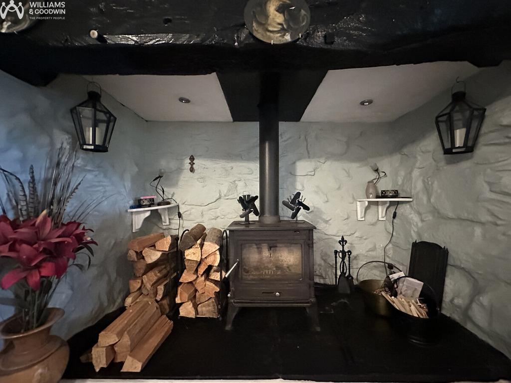 A spacious yet cosy ground floor reception room which acts as both lounge and dining area with ample space to fit a range of furniture including a dining room table set. An impressive log burner is located within the character stone fireplace to the side of the room. A door leads into: