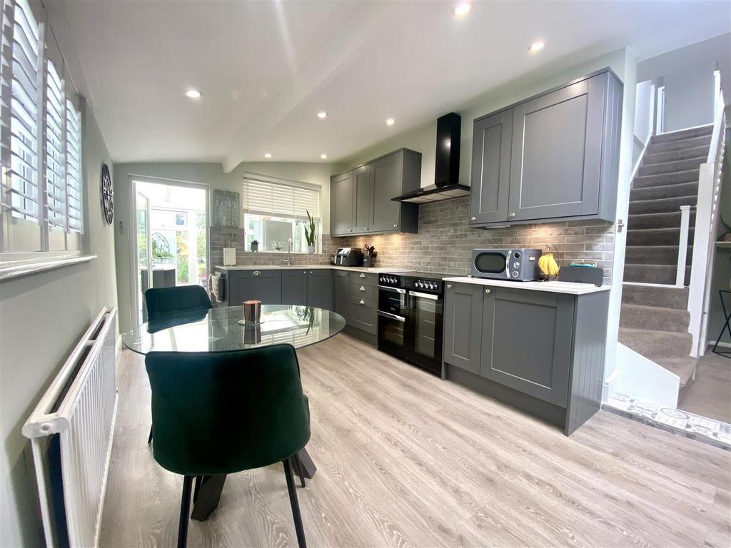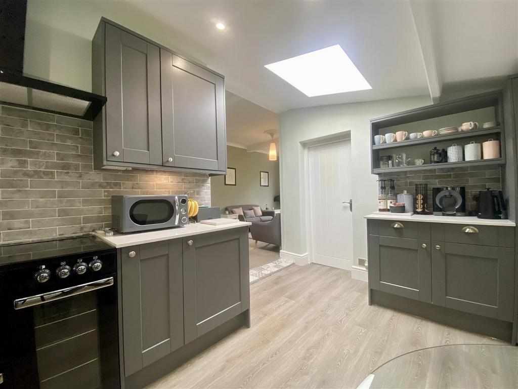 Kitchen - Modern kitchen with ample storage in a range of floor and eye level units accompanied by integrated appliances to include dishwasher and electric Belling oven with five ring electric hob and extractor over. The kitchen further benefits from spot lights, skylight and stylish shutters.