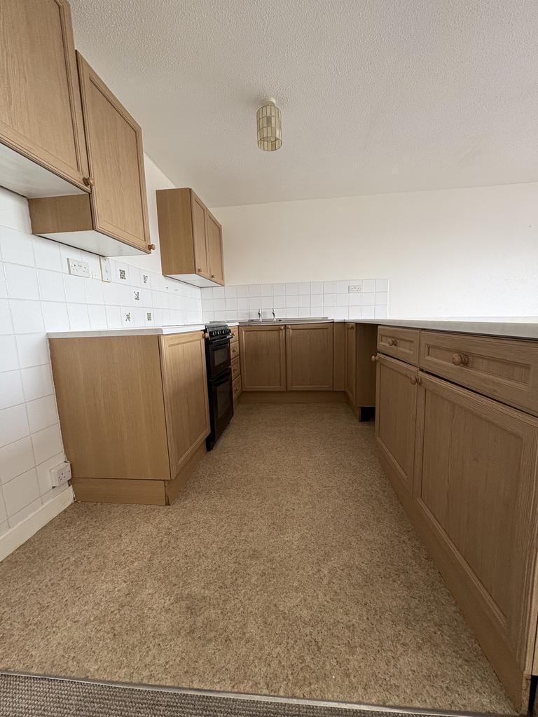Fitted Kitchen with breakfast bar. Space for fridge, freezer and plumbing for a washing machine.