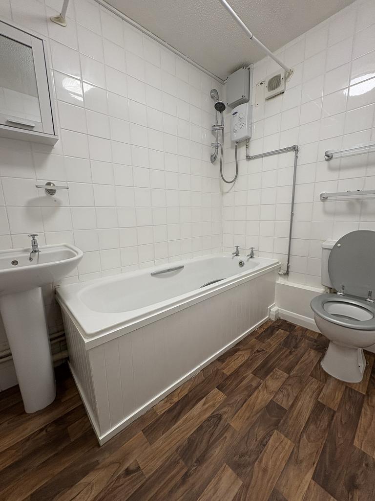 Bathroom with shower over bath.