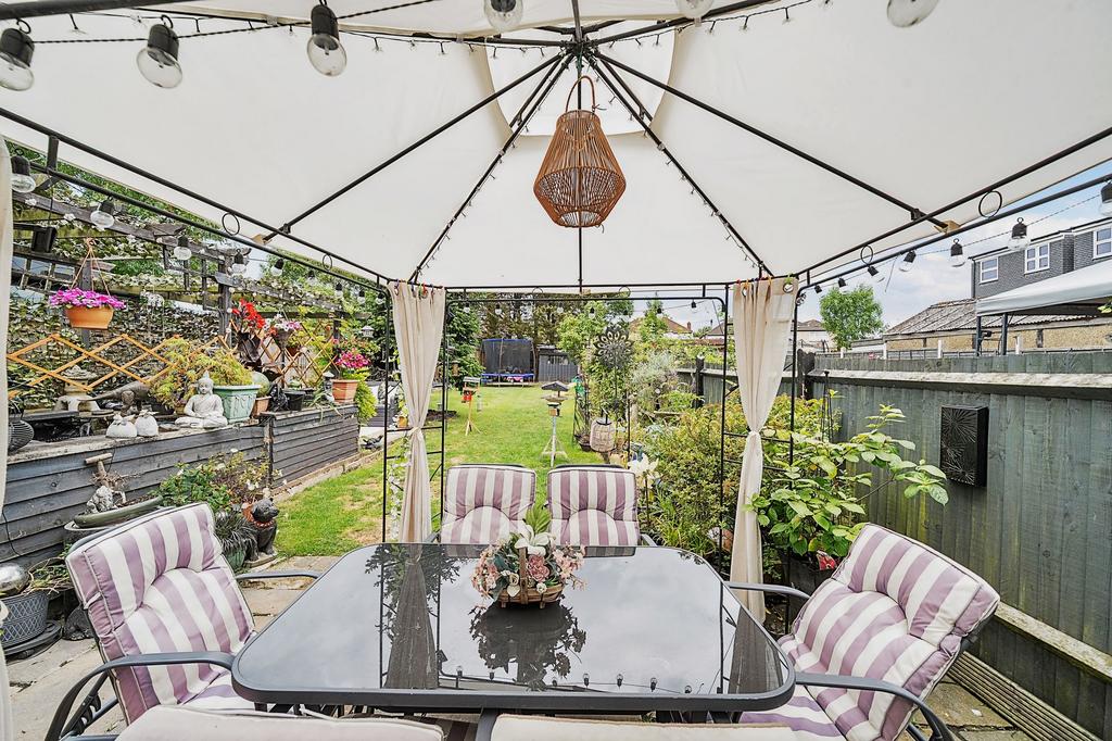 The beautifully maintained garden is framed by a vibrant array of flowers, shrubs, and mature bushes, creating a serene and private outdoor space along with a large paved patio area — perfect for outdoor entertaining. At the front of the house you have a driveway which offers off-street parking for two vehicles.