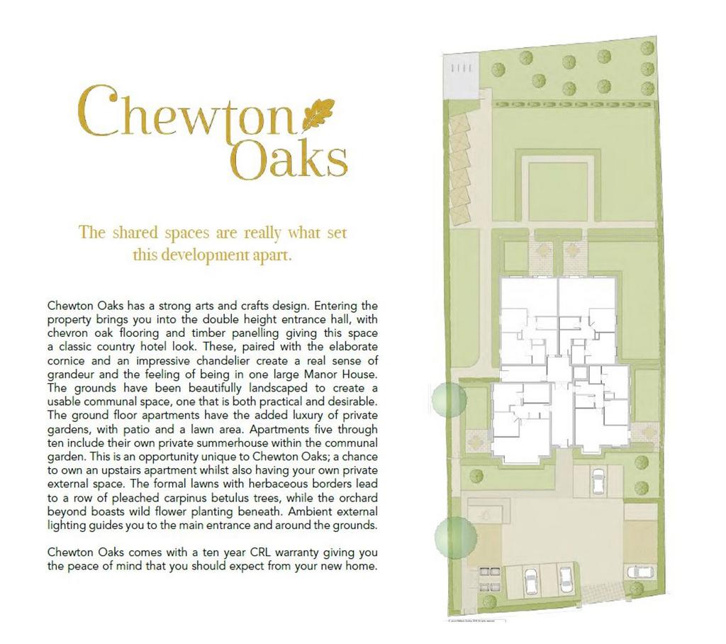 A rare opportunity to purchase this immaculate two bedroom first floor apartment in Chewton Oaks, a select development of just Ten apartments each with their own private summer house nestled in the landscaped grounds. This contemporary apartment was built in 2019 and is presented in immaculate decorative condition throughout The stylish accommodation comprises of an open plan living area featuring a luxury fitted kitchen with hi-spec integrated appliances, dining area and sitting room with French opening doors leading to the generous balcony. The master bedroom has a bespoke fully tiled ensuite. A further double guest bedroom with access to the family bathroom with luxury white sanitary ware. The apartment further benefits from underfloor heating, off road visitor parking, communal landscaped gardens, private summerhouse and one allocated off-road parking space. This gracious apartment is available immediately. Pets Allowed