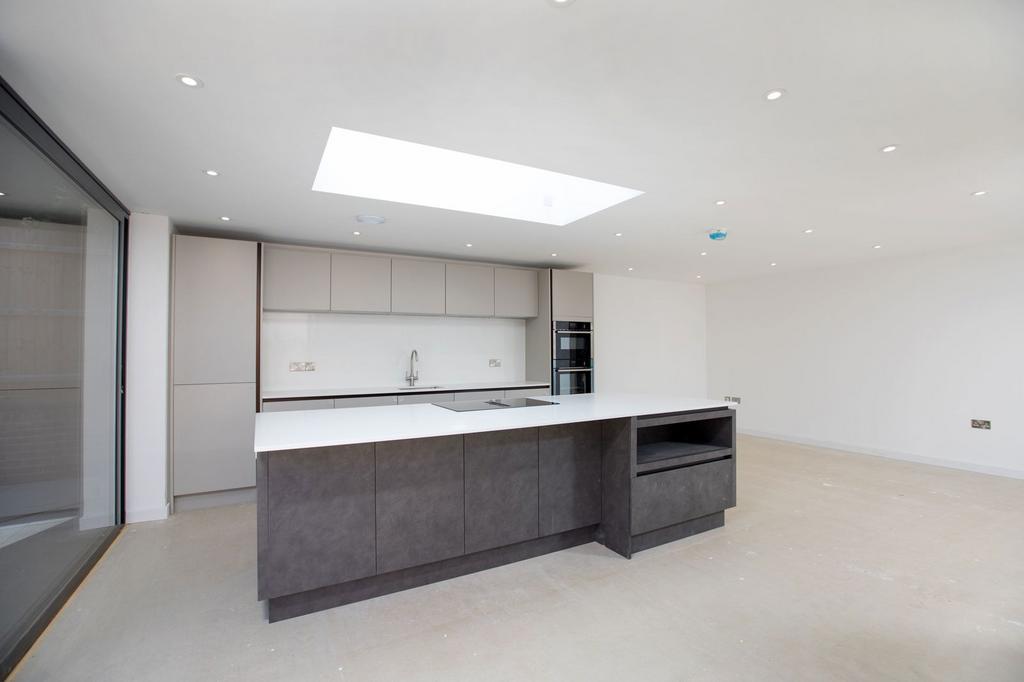The kitchen/family/dining room is a lovely open plan space with a picture window and two large sliding patio doors opening onto the rear garden and there is a roof lantern. The kitchen has been fitted with a stylish range of wall and base level units with quartz work surfaces, there is an island unit with built in recycling and a Neff induction hob which is self extracting. There is an integrated fridge, freezer, Neff Slide and Hide electric fan oven and a combination oven/microwave. The floor will be ceramic tiled (buyer can choose).