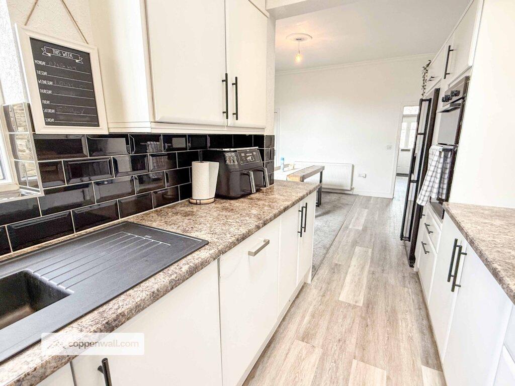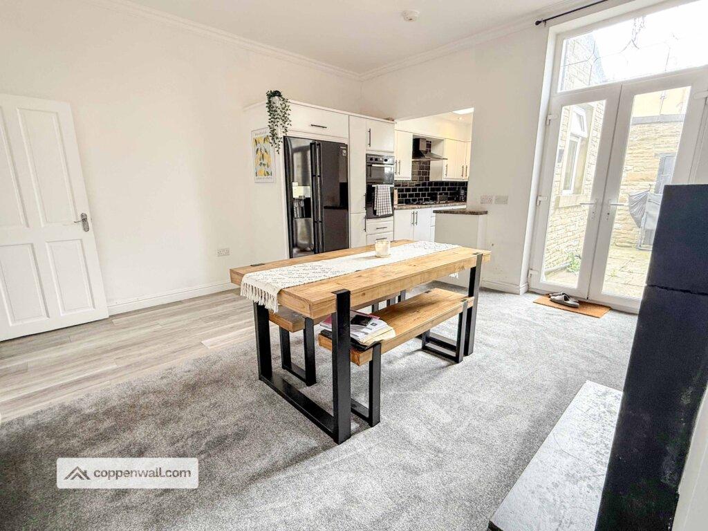 Open plan style kitchen / dining room, French patio doors that lead out into the rear yard. Access into the under stair storage cupboard. Multi fuel stove all in working order and has been recently swept.