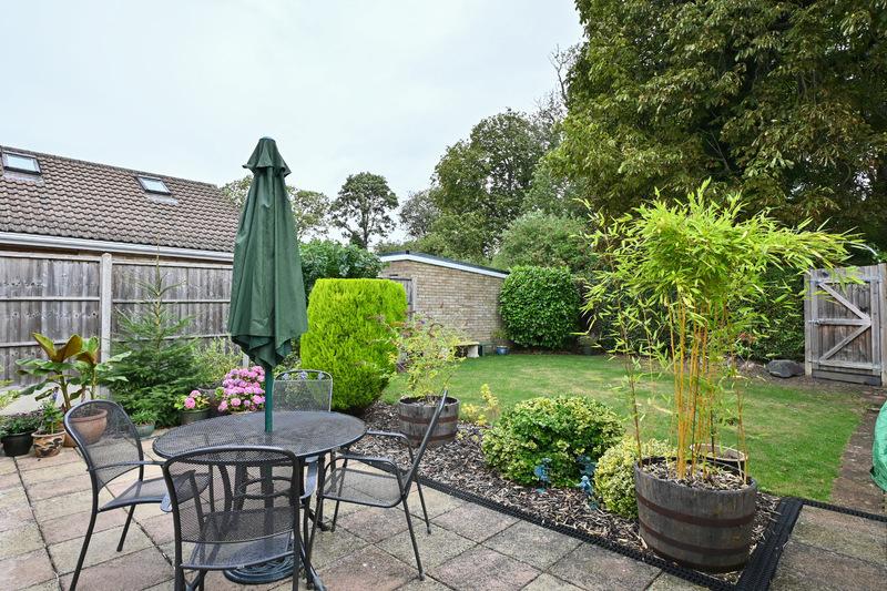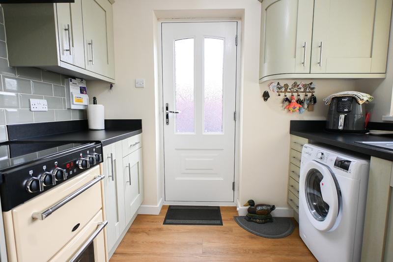 The front of the property benefits from off-road parking, providing convenient access for vehicles. A side gate offers entry to the rear garden, where you'll find a garage, ideal for storage or other practical uses. There's also space available for a shed if required. The rear garden features a slabbed patio area, perfect for outdoor seating and relaxing, and is partly laid to grass with vibrant bushes adding colour and charm to the space.