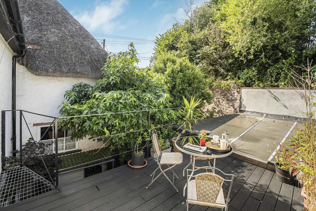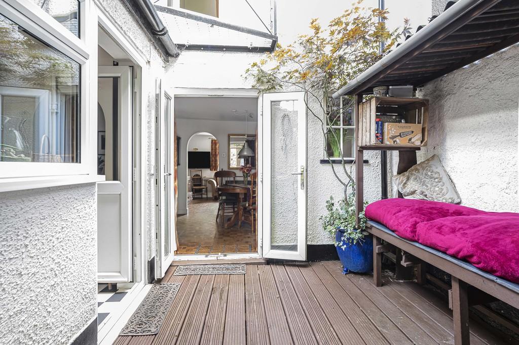 Outside, the rear garden offers a secluded and characterful retreat, with an areas of decking and a sheltered corner for quiet relaxation. A door at the far end opens into a distinctive office/studio, bathed in natural light thanks to a durable clear roof covering. Exposed brickwork and a tranquil fish pond lend further charm to this wonderfully creative hideaway, ideal for work, inspiration or escape.