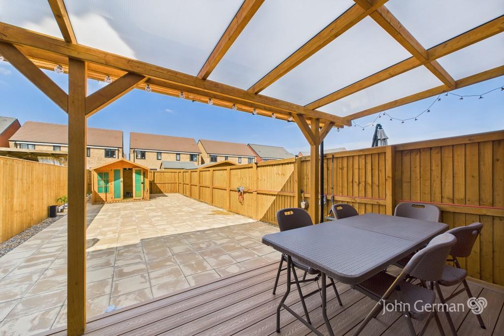 Outside the property is set well back from the road behind a tarmaced driveway with a turfed area at the side and newly planted hedge. The rear garden has been fully paved requiring minimal maintenance with a composite covered decked seating area.