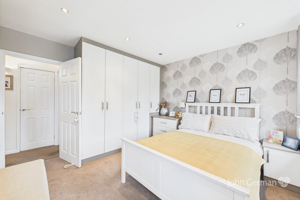 Bedroom two is a spacious king-size room with its own set of bespoke wardrobes and drawer units, mirroring the high-quality finishes of the principal suite.
