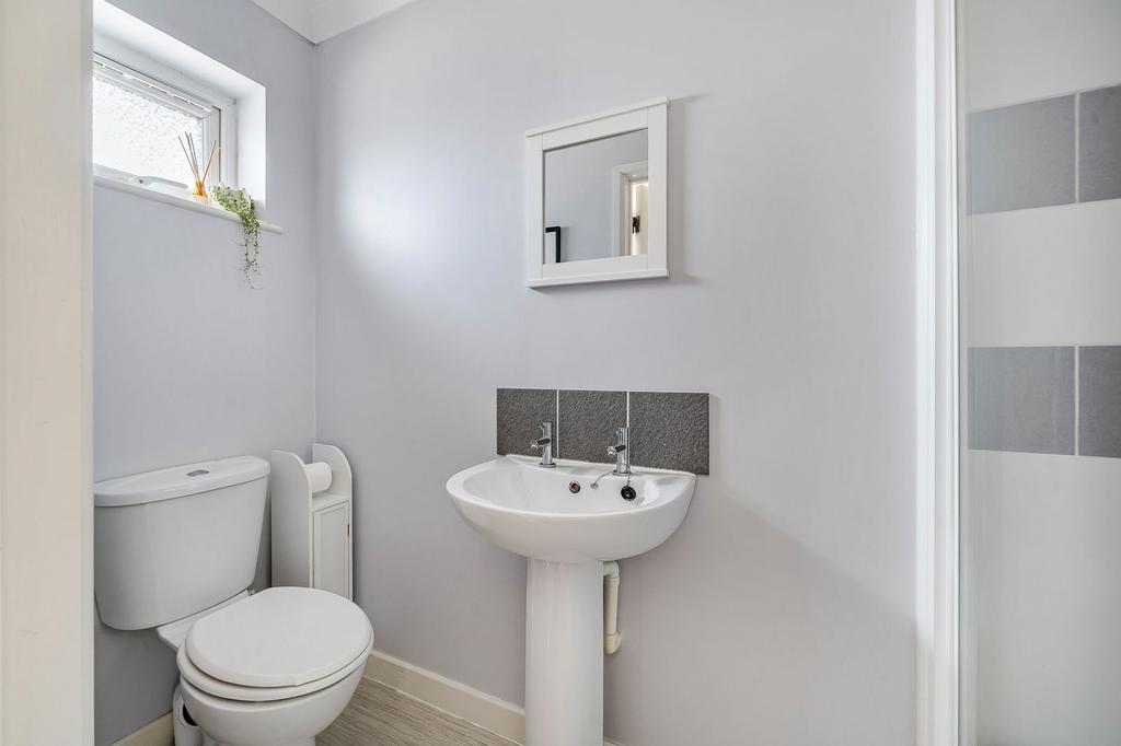 Accommodation - The ground floor welcomes you with a light and spacious hallway, a convenient shower room, and a built-in storage cupboard. At the heart of the home is a stunning open-plan kitchen, living, and dining space. The contemporary kitchen features a central island, integrated appliances, and a stylish range of matching units. The lounge area boasts a wall mounted electric fireplace and large sliding doors that open onto the front patio, flooding the space with natural light. A third bedroom or flexible dining room/home office completes the ground floor. Upstairs are two well-proportioned bedrooms with far-reaching countryside views, along with a modern family bathroom.