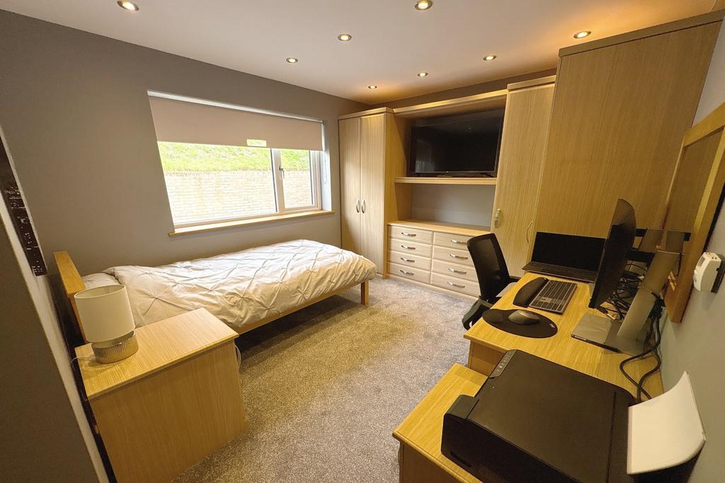A generous room with double glazed window to front and views towards the sea, fitted wardrobes, under floor heating, door to en-suite