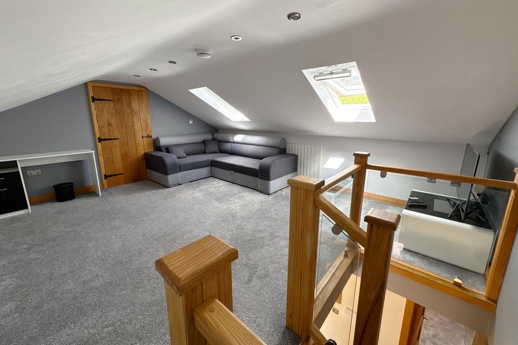 Accessed via a bespoke oak staircase in the hall is a stunning first floor open plan room with two Velux windows to front. Currently used as an occasional bedroom but suitable for a den, home cinema or office. Door into attic store area, two radiators