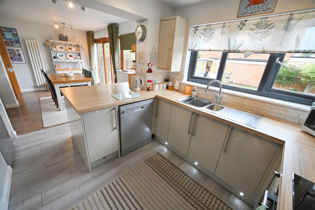 - A superb full width 23ft open plan dining kitchen with family area, fitted with a matching suite of light gloss units