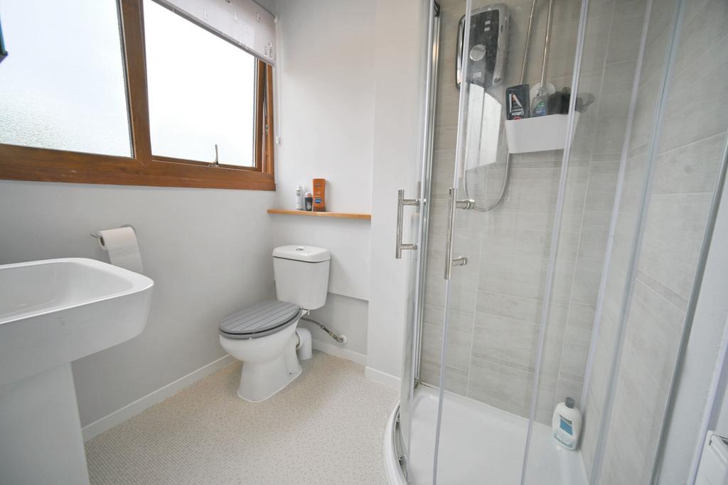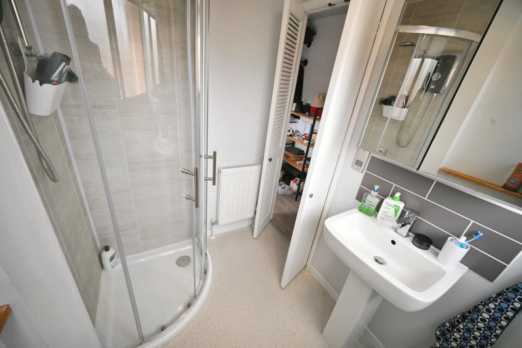 Ensuite Shower Room: 6’2’’ (1.88m) x 5’3’’ (1.61m) Fitted with a white suite comprising corner shower with electric shower unit, pedestal wash hand basin, low level WC, radiator, mirrored cabinet, vinyl flooring and double glazed opaque window to rear.