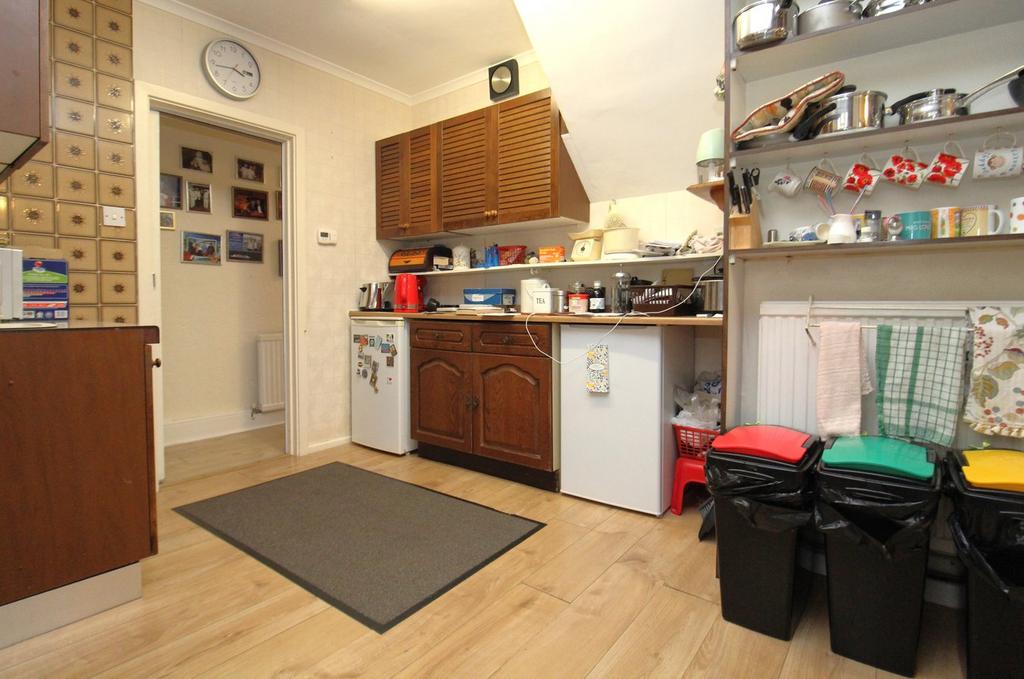 Abt. 11' 8" x 12' 0" (3.56m x 3.66m) Laminate flooring. Double glazed window to conservatory. Access from living room and hallway. Built-in storage cupboard. Worktops with a range of wall and base mounted units. Space for cooker and plumbed appliances. Radiator.