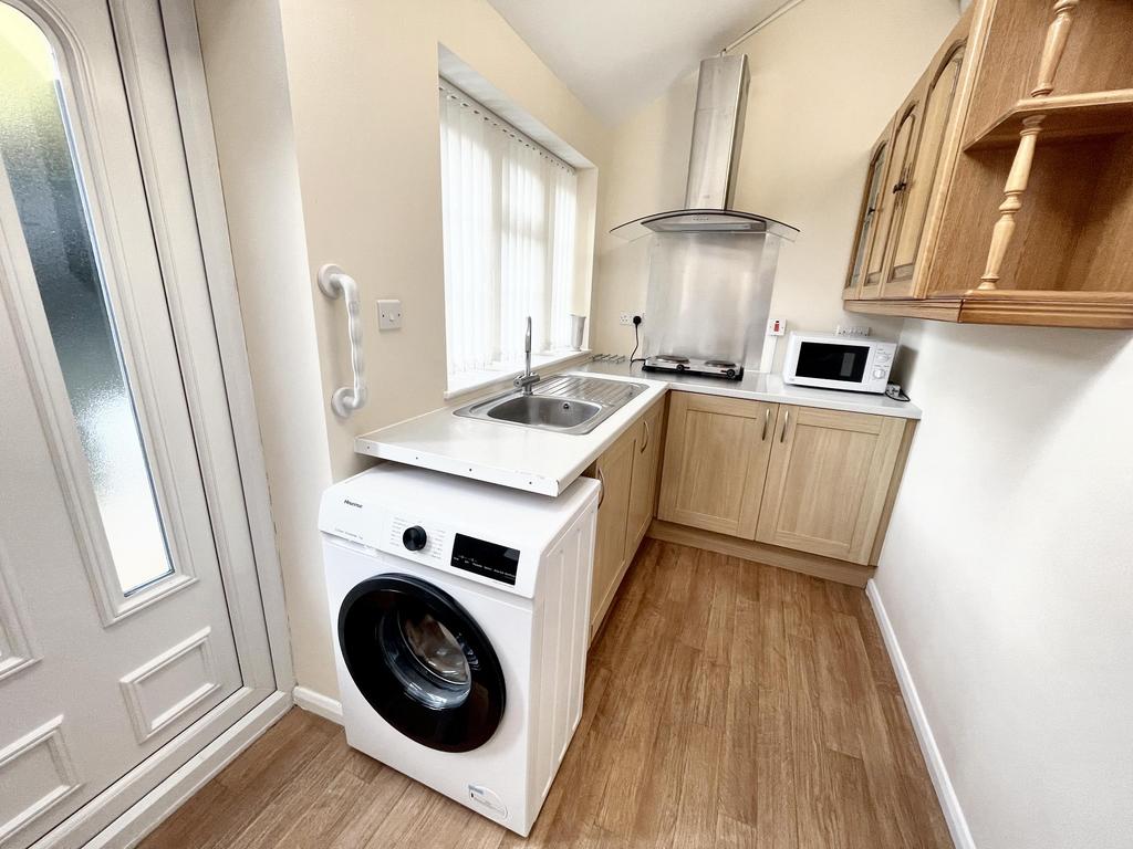 Kitchen with f/freezer, washing machine and electric hob