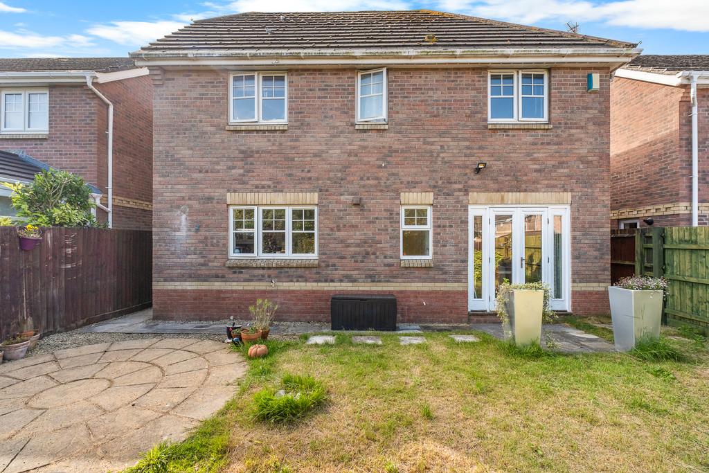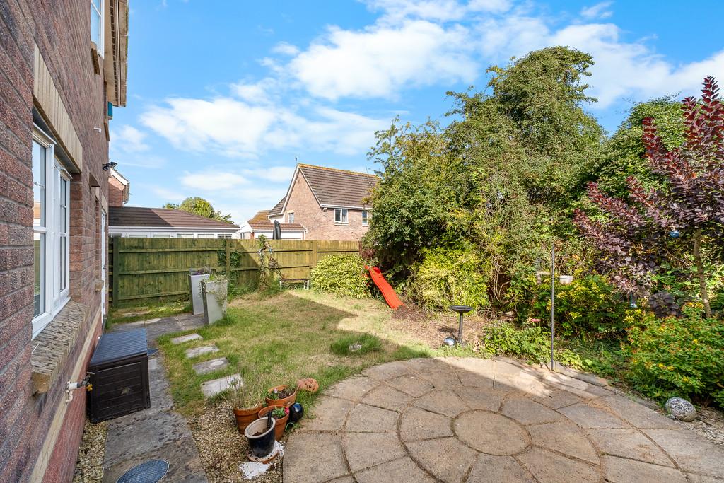 To the rear: Enclosed with fencing, Laid to lawn and patio.