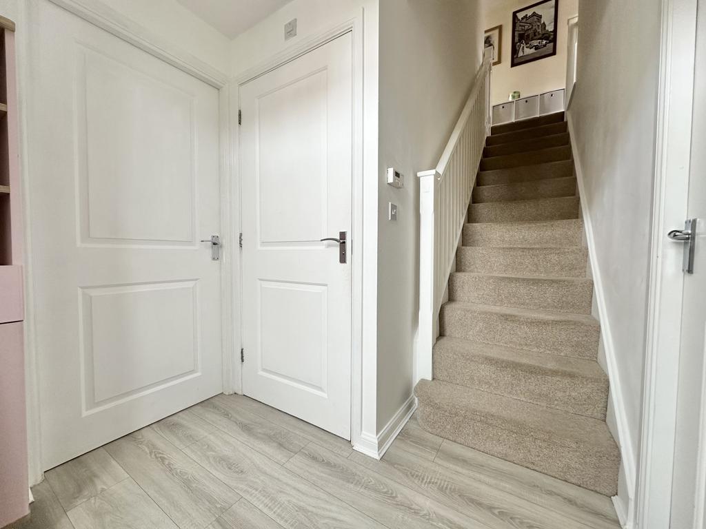 UPVC double glazed entrance door to front aspect, central heating radiator and staircase leading to the first floor.