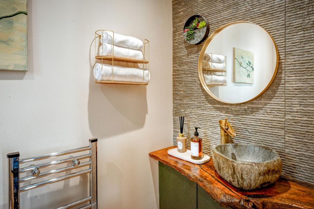 Upstairs, there are five 'proper' double bedrooms. The principal suite features a walk-in shower, roll-top bath, LED feature lighting, electric velux blinds and a stylish basin set into bespoke cabinetry. The family bathroom includes twin basins and an oversized bath - a perfect spot to soak and unwind or for bathing a young family.
