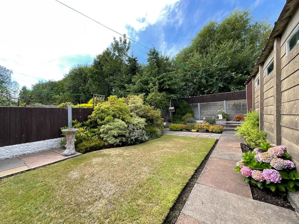 Outside: There are mature gardens to front and rear, the front incorporating driveway for off road parking with twin timber gates giving access to the garage. The rear garden is arranged with paved patio and shaped lawn.