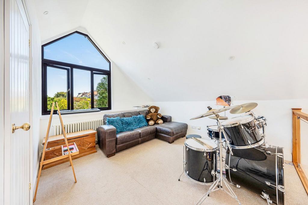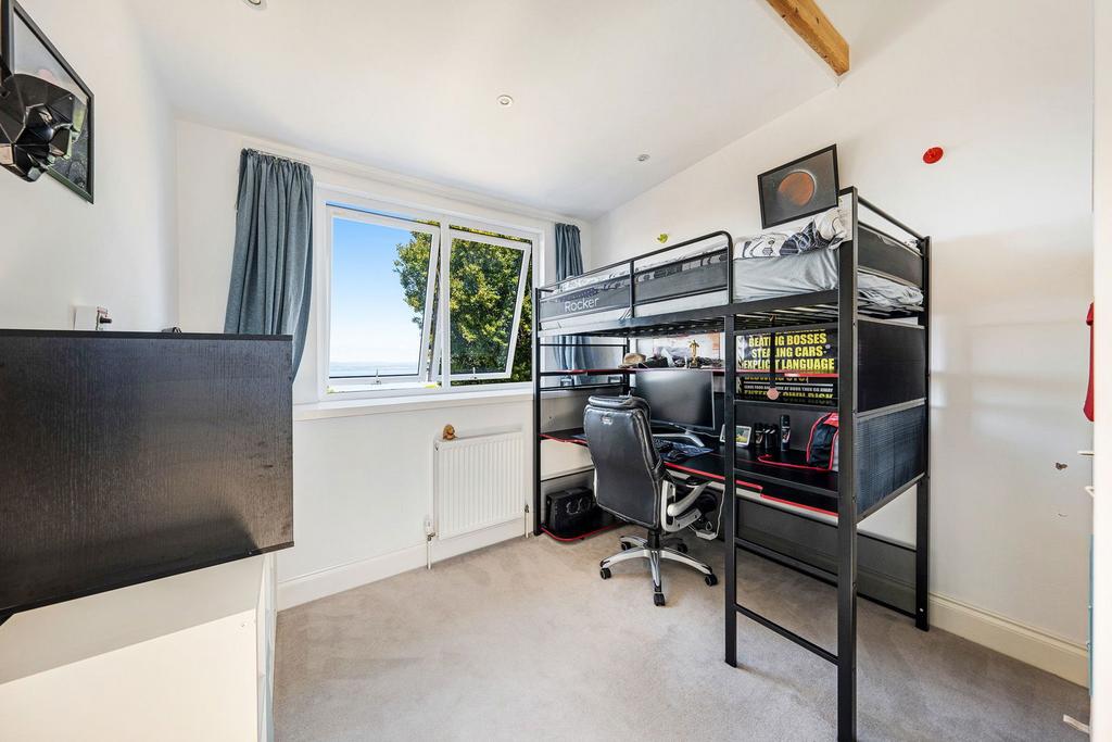 Stairs rising to the first floor onto a galleried landing with built in seated benches running the course of the corridor, the family bathroom with spa style enclosed shower, wash hand basin and WC. Bedroom three, a double with views of the estuary, bedroom four with mezzanine sleeping bunk which fits a double mattress and views to the estuary, and Bedroom two a large double bedroom with dual aspect to the front of the property and to the rear with Estuary views.