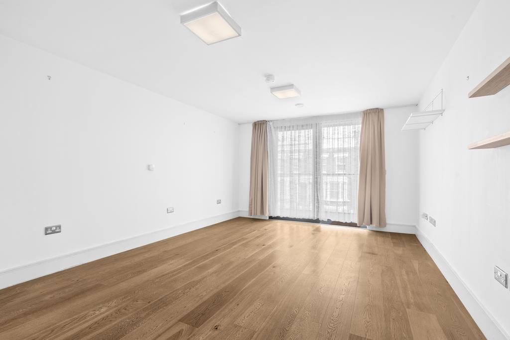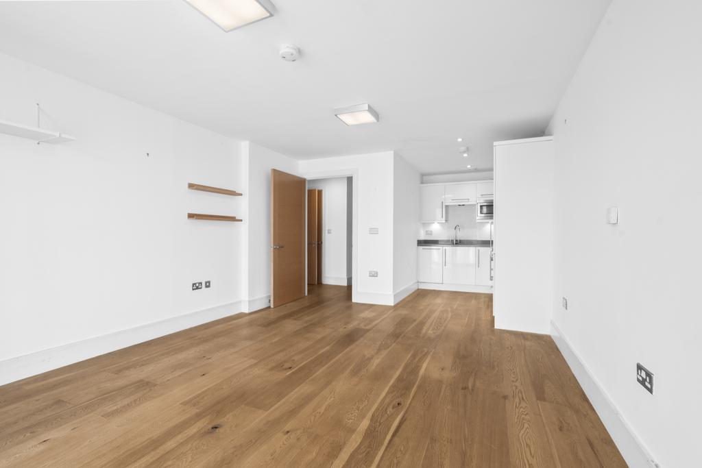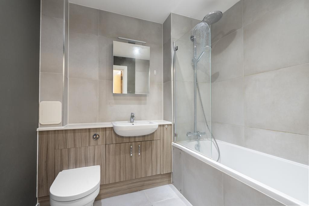 A spacious and contemporary one-bedroom apartment for sale in the sought-after Argo House development on Kilburn Park Road, NW6. Located on the first floor and measuring approximately 550 sq ft, the flat offers a bright open-plan living and dining area with floor-to-ceiling windows and direct access to a private balcony. The modern kitchen is fully integrated with high-gloss cabinetry and built-in appliances. The double bedroom is well-proportioned and features large windows and fitted wardrobes. The bathroom is finished to a high standard with a full-size bath, overhead shower, and vanity unit.