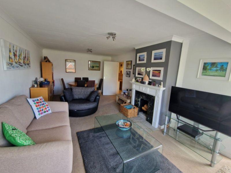 LOUNGE/DINING ROOM: 6.75m x 3.68m (22'2" x 12'1") A bright spacious room with feature fireplace with stone hearth, TV point, radiator, double glazed window overlooking the communal gardens, uPVC double glazed door to: