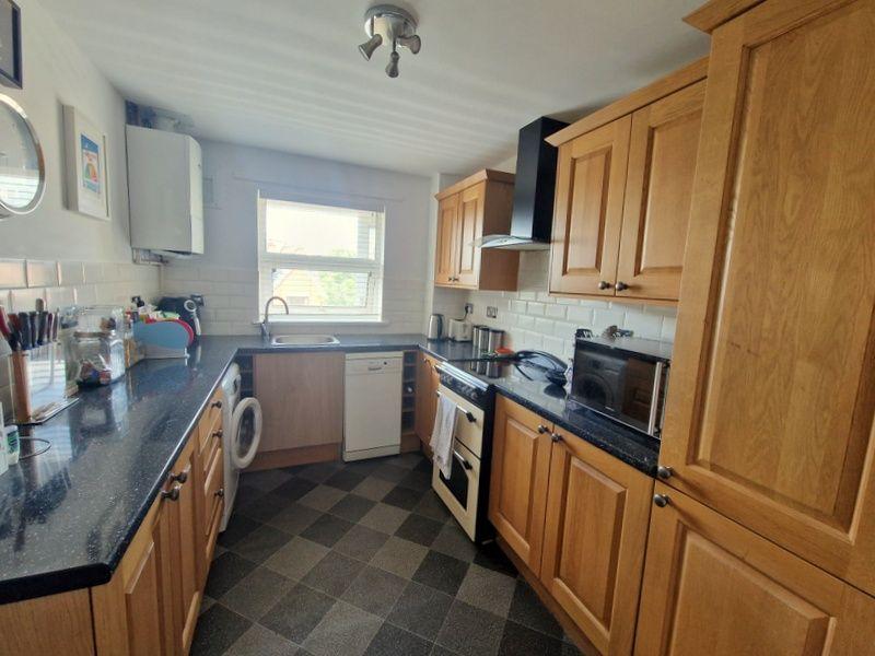 KITCHEN/BREAKFAST ROOM: 3.73m x 2.38m (12'3" x 7'10") Fitted with a range of patterned gloss finished work surfaces with tiled surrounds and inset stainless steel sink unit with mixer tap, cupboards, drawer units, plumbing for automatic washing machine, space for dishwasher beneath work surfaces, wall mounted cupboards, electric cooker point with chimney style extractor hood over with light, space for upright fridge/freezer, radiator, wall mounted Worcester gas boiler for hot water and central heating, double glazed window to rear aspect overlooking the gardens