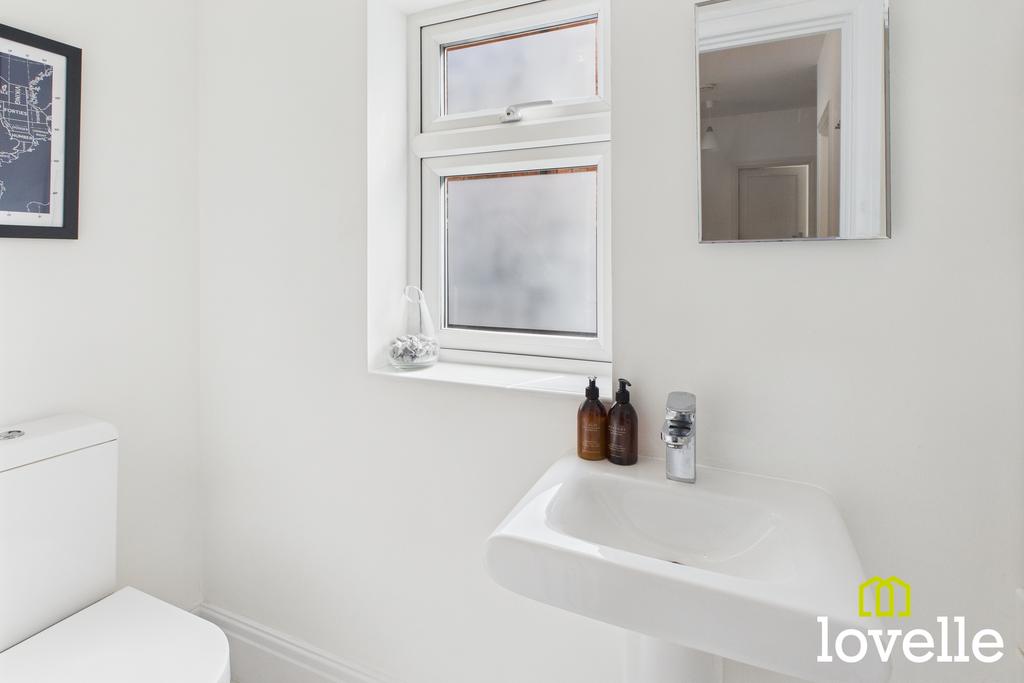 To the first floor, an impressive open gallery landing creates a sense of space and light, providing access to the home’s well-proportioned bedrooms and family bathroom. The four bedrooms are all generous doubles, thoughtfully designed to combine comfort and style. Two of the rooms enjoy views to the front of the property, while the remaining two overlook the rear garden, each offering a calming outlook to wake up to every morning. Each bedroom continues the home’s modern, sleek and refined aesthetic, with clean lines and a fresh, contemporary finish. These tranquil spaces provide the perfect retreat at the end of the day, ideal for relaxation, reflection and a restful night’s sleep. The box room is currently utilised as a practical storage room but lends itself equally well as a nursery, dressing room or home office, offering flexibility to adapt to the changing needs of family life. All bedrooms are served by the family bathroom, which features a classic three-piece suite comprising a freestanding bath, hand basin and low-flush WC. With the potential to update to your own taste, this space provides a functional and convenient facility for the whole household.