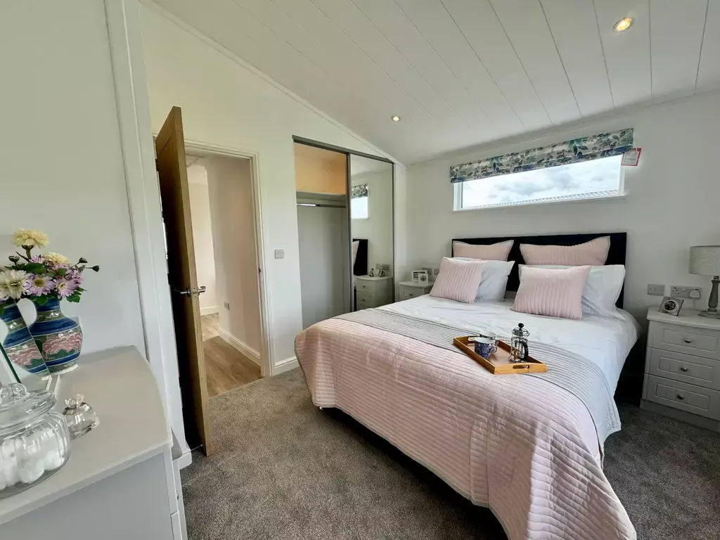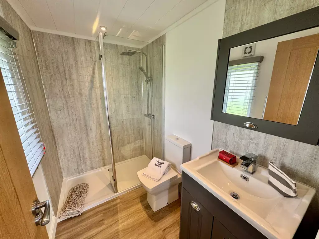 The Lakeland Lodge is a stunning lodge offering breath taking views, refined comfort and contemporary elegance. This two-bedroom, one-shower unit can sleep four people and is located in the serene Coniston View Lake District Lodge Park. The lodge features a seamless open-plan layout, combining the living, dining, and kitchen areas into a harmonious and welcoming space. The high-end kitchen is a chef’s delight, with a stylish central island and modern appliances. The luxury lodge design prioritises a tranquil atmosphere, seen in the spa-like family bathroom and the master bedroom with its private ensuite. Furthermore, The true highlight is the large glass-fronted decking, perfectly positioned to maximise the surrounding sea views, providing a tranquil space to unwind and create lasting memories.