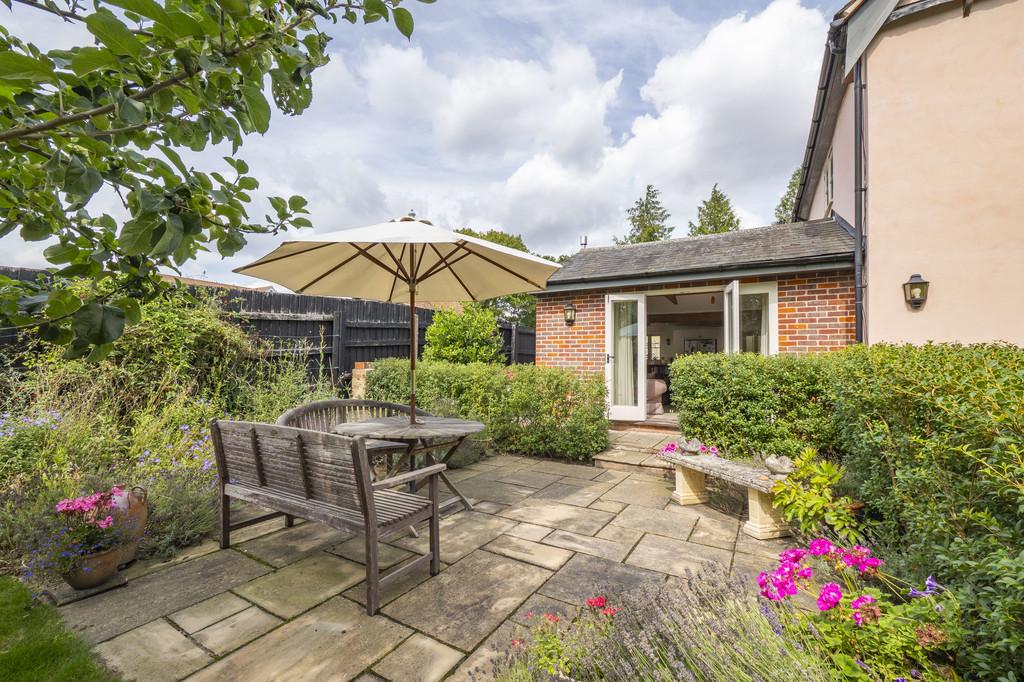 The gardens are particularly private and enclosed by Hornbeam hedges and contains a particularly fine Horse Chestnut Tree. Various flower beds are populated with a diverse and colourful variety of flowers and plants. A stone paved terrace receives the afternoon sun and provides an attractive area for dining al-fresco. A stone pathway continues to the rear of the house and onto the front door. External water tap.