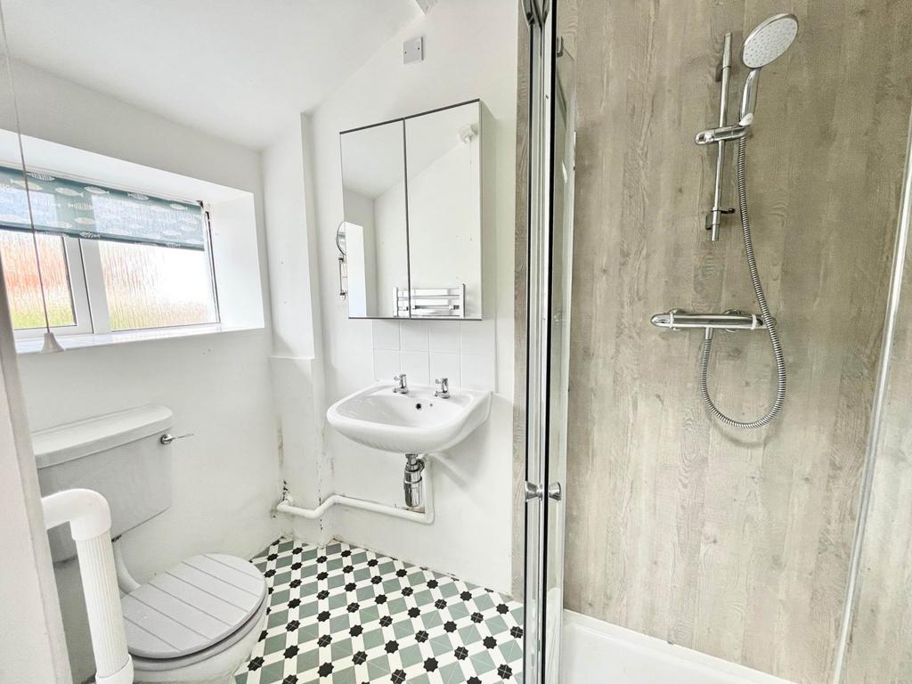 The shower room is also located on the ground floor and has a modern white suite with shower cubicle.