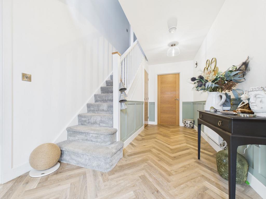 Nestled within a sought-after cul-de-sac location, this exquisite four-bedroom family home offers a harmonious blend of style and functionality. The high-spec kitchen/diner is a focal point, boasting integrated appliances, quartz work surfaces, and a cutting-edge sound system, ideal for entertaining or quiet family meals. A convenient downstairs WC and utility room enhance practicality, while an en-suite in the master bedroom ensures comfort and privacy. Bedrooms 1 and 2 impress with two built-in double wardrobes, providing ample storage space, while the property also features a driveway and double garage. With a beautifully maintained rear garden and a welcoming courtesy door into the garage, this home offers a total internal floor area of 1789 sqft. Council Tax Band E further complements this enticing property, perfectly situated within easy reach of the A1(M), local doctors, and reputable schools.
