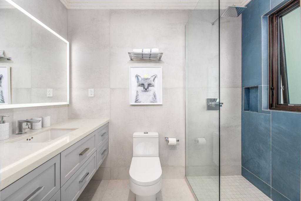 - Open-plan living space with an oversized 80” TV for elevated comfort and entertainment
