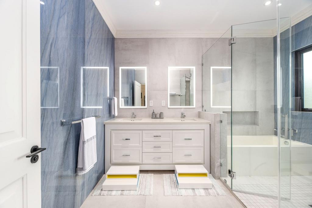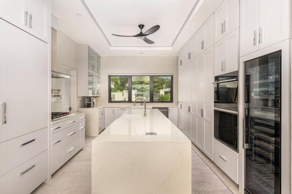 - Modern chef’s kitchen with quartz countertops and top-of-the-line appliances