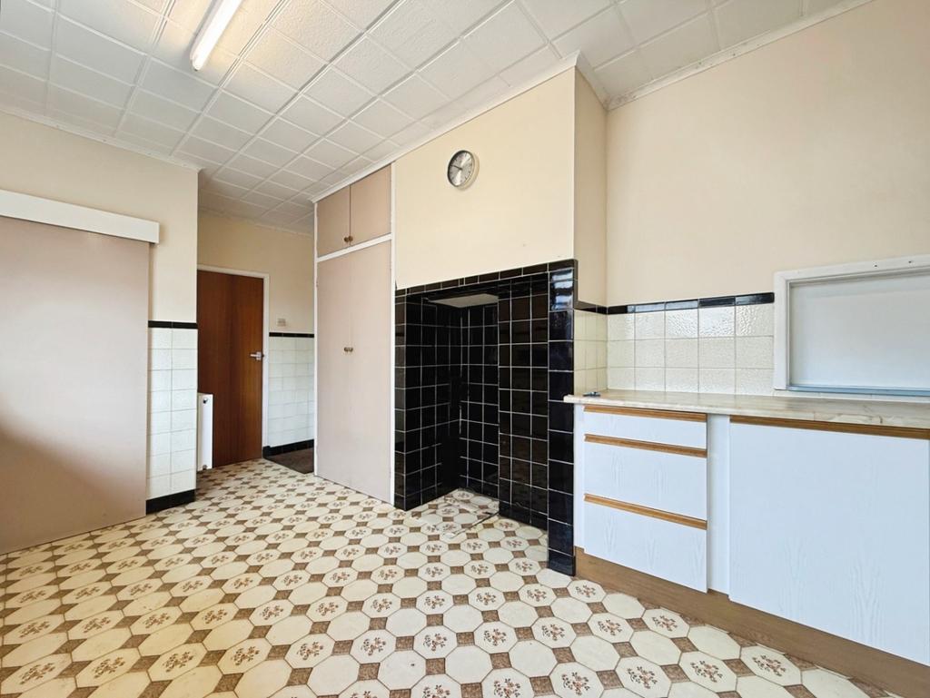 Fitted with a range of matching wall and base units with worktop over, stainless steel sink with mixer tap, space and plumbing for washing machine, pantry style cupboard, space for fridge/freezer, space for freestanding cooker, airing cupboard housing gas combination boiler (2019), uPVC double glazed window to side elevation, door into: