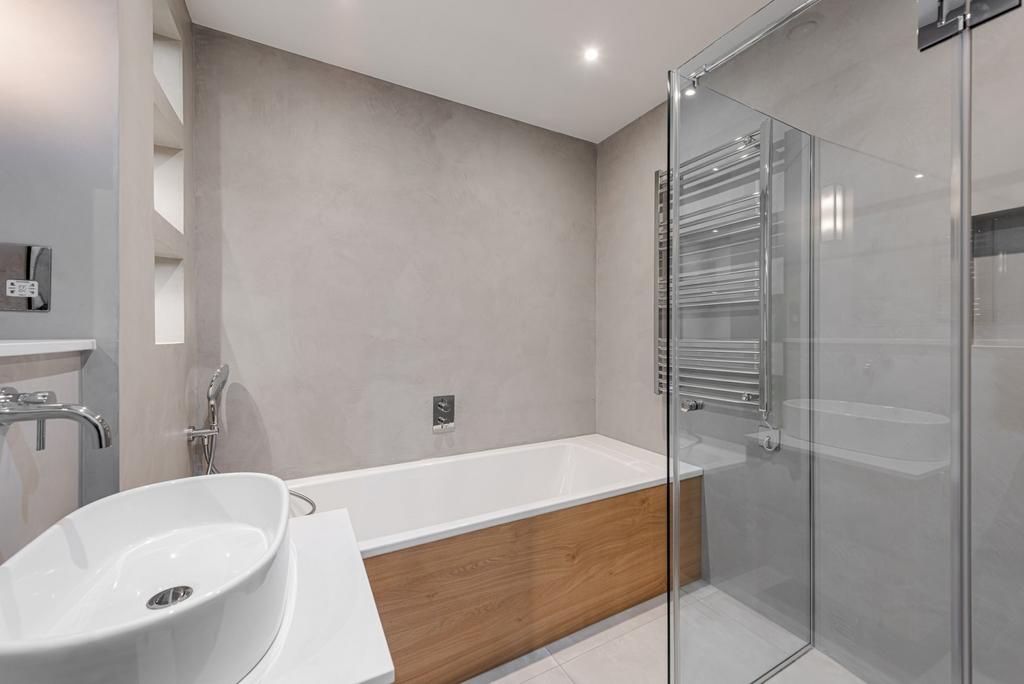 Perched on the top floor of the striking St John’s Hall, this newly constructed 1067 sqft, split-level two-bedroom apartment offers an extraordinary fusion of contemporary luxury and historic character. As you step through the secure communal entrance, you’re immediately struck by the building’s soaring ceilings and carefully preserved original features. Inside your own front door, the lower level welcomes you with a generous hall, cleverly designed to accommodate plentiful built-in storage and even a dedicated workspace—ideal for those who work from home. A beautifully appointed bathroom, finished with high-end fittings and modern concrete style finish, and two spacious bedrooms bathed in natural light complete this level.