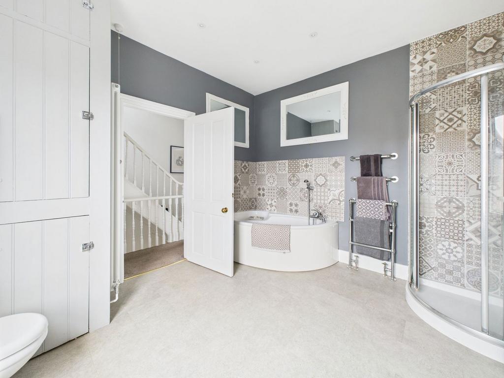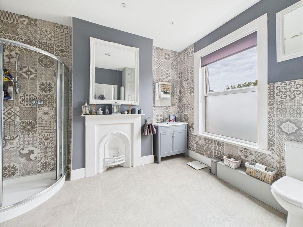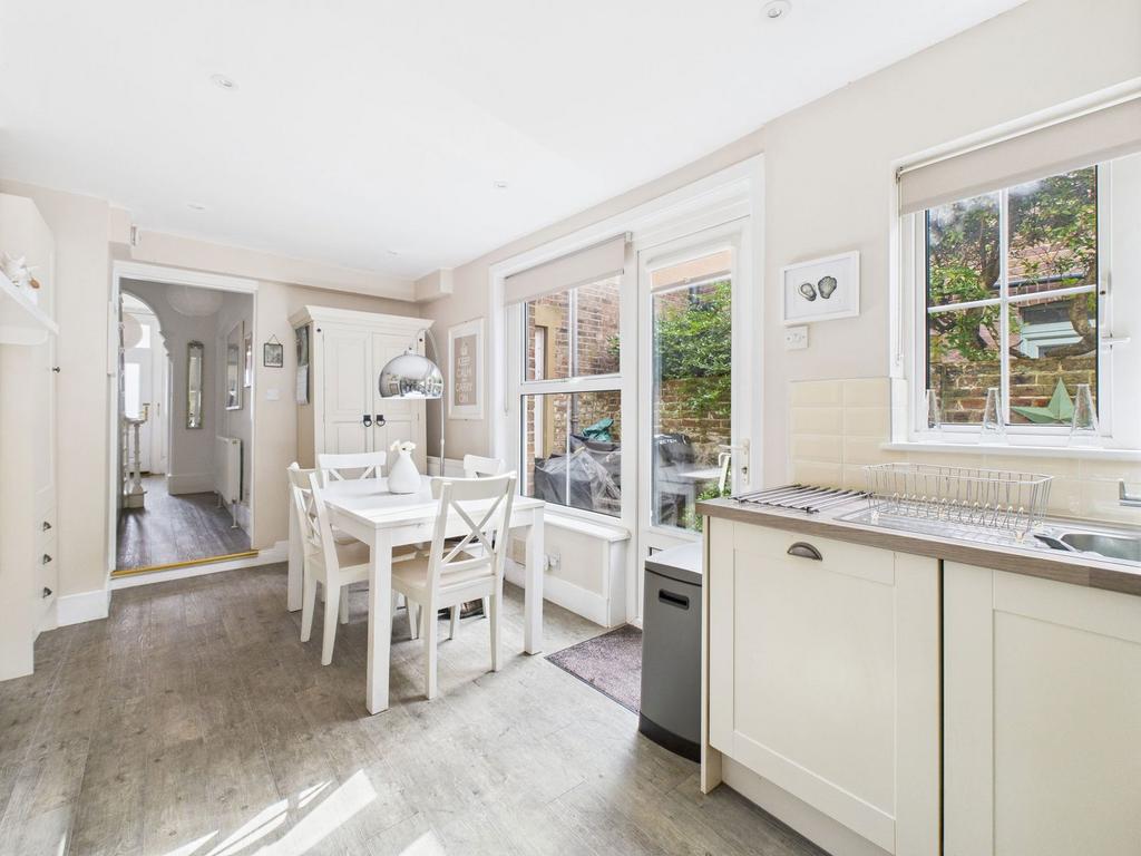 Internal The covered front door opens into a welcoming entrance hall, providing access to all ground floor rooms. Stairs rise to the first floor, and there is ample space to hang coats and remove shoes. Located at the front of the property and measuring 12‘2" x 12’1" by 9‘7" x 11’4", the dual-aspect bay-fronted living/dining room benefits from both south and north-facing windows, allowing natural light to fill the space throughout the day and evening—sunlight brightens the living room by day and the dining area by evening. To the rear of the house lies the generously sized kitchen/breakfast room, measuring ‘x’ by ‘x’. This space comfortably accommodates a large family dining table without feeling cramped. The kitchen is fitted with a range of cream shaker-style wall and base units and features a variety of integrated appliances, including a dishwasher, washing machine, double oven, and four-ring gas hob with extractor fan. Beneath the stairs is a convenient ground floor WC, complete with a toilet and hand wash basin. Upstairs on the first floor are two spacious double bedrooms, measuring 16‘9" x 12’2" and 9‘8" x 19’6", each easily accommodating a large bed along with freestanding furniture. The main bedroom, with a south-facing bay window, also features a stunning marble fireplace—an elegant focal point of the room. The family bathroom is fitted with a contemporary four-piece suite, including a corner bath, corner shower, toilet, and a shaker-style vanity unit with hand wash basin. The second floor hosts two additional bedrooms. The third bedroom, which is south-facing, includes built-in wardrobes, extra eaves storage, and offers flexibility to be used as a bedroom, an additional reception space, or a home office.